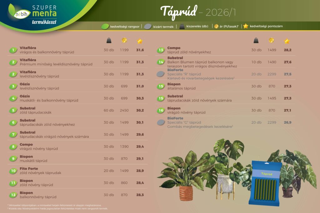 Táprúd – összesített eredmények
